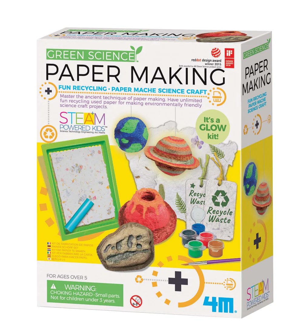 Recycled paper making kit, molds, paint.