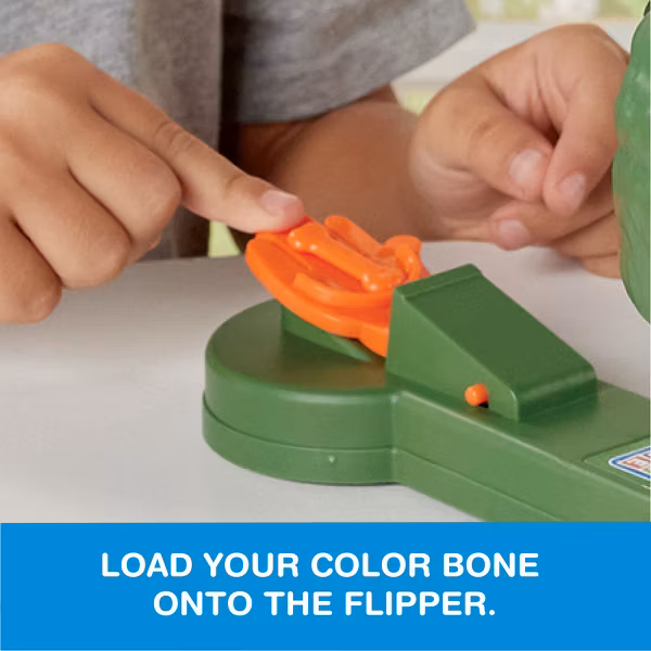 HOW TO PLAY: Each player has 10 colored bones to match up to your launcher. Try to launch your bones into his mouth as he spins around with his jaws opening & closing. First person to get all their bones in wins!!!